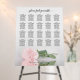 This gorgeous wedding seating chart has places for 200 guests at 20 tables - 10 seats per table. The design is simple yet elegant with a lacy script calligraphy title and a single long stemmed pale blush pink colored rose reflecting in a pool of water with waves and ripples. There is space for the names of the couple and the wedding date. Beautiful way to help your guests find their seats at your wedding reception.