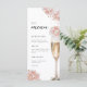 This elegant bridal shower menu features an elegant watercolor design of soft pink roses and sparkly bubble details.