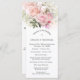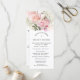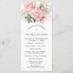 Beautiful arrangement of blush pink roses and white hydrangea flowers decorate the top of this elegant wedding program. There is plenty of room for you to include the important moments of your own wedding ceremony and to honor your wedding participants. This wedding program is part of the Summer Romance collection which contains many coordinating items such as wedding welcome signs and table number cards.