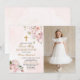 Blush Pink Rose Floral First Holy Communion Photo Invitation