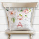 Blush Pink Rose Floral Marble Name Monogram Throw Pillow