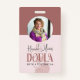 Stylish, modern Doula business badge , badge features pregnant lady icon in trendy rose gold faux color on a blush pink background. Personalize with your name and title on the front . Perfect for midwife, doula /birth coach, lactation consultant, postpartum doulas.