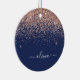 Blush Pink Rose Gold Navy Blue Glitter Monogram Ceramic Ornament