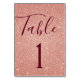 Blush Pink - Rose Gold and Burgundy Sparkle and Glitter Script Modern and Elegant Table Number . The table number can be updated and changed on this dusty pink girly card.