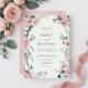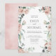 Celebrate your love with this blush rose romantic wedding invitation. It features a lush border of watercolor pink florals and soft eucalyptus greenery botanicals against a clean white backdrop. This design is ideal for couples planning a timeless summer garden wedding or an elegant outdoor ceremony among the flowers.