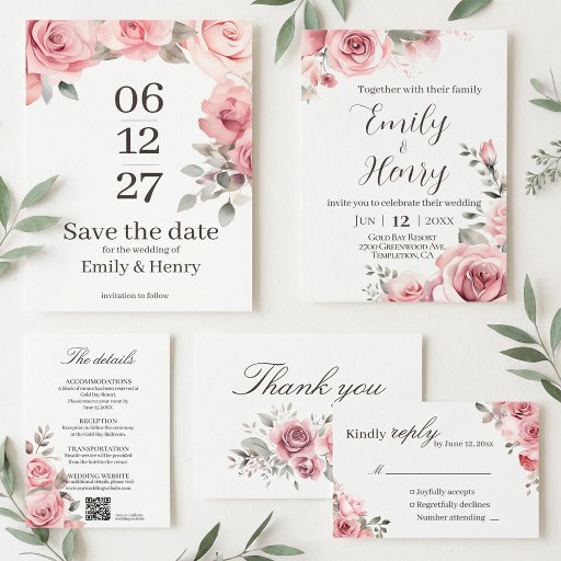 Blush Pink Rose Wedding Stationery SuiteDesigned by GlowValeStudio