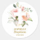 Blush Pink Rose & White Cross Girl Baptism Classic Round Sticker