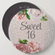 Blush Pink Roses Floral Silver Glitter Sweet 16 Button