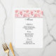 Menu card is shown with a art print of lovely blush pink roses accented at the top of the card, shown on the basic white card paper.