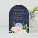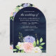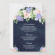 Blush Pink Roses Purple Hydrangea Navy Wedding Invitation