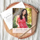 Make sure all your friends and relatives will be able to celebrate your daughter’s milestone graduation! Send out this girly, stunning, simple, modern, personalized photo “Save the Date” postcard for an event to remember. A fun, playful visual of soft gray script handwriting and cute, playful hearts, along with her name, class year, and school, overlay a light blush pink band. On the front, add the photo of your choice and personalize the custom text with your grad’s name, school and class year. Your custom message and return address adorn the back. Matching invites, thank you cards, cap toppers, plaques and other graduation goodies are also available in this trendy and stylish collection. Guaranteed to add stylish fun to her special occasion!