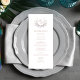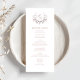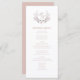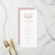 Add a touch of sophistication to your special day with this wedding menu card, featuring simple elegant calligraphy and a refined bride and groom monogram. Designed in stylish pale blush pink, this reception dinner template showcases a classic wreath laurel motif with delicate greenery leaves foliage, creating a timeless and romantic look for your rehearsal party table. The traditional typography design and classy ampersand initials add an elegant, personalized touch. Perfect for an effortlessly chic wedding