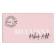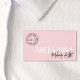 The background is a soft blush pink for a subtle, feminine touch but can be changed to any color to fit your brand style, making this a polished and cohesive name tag for makeup artists and beauty professionals.