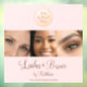 Lashes and Brows Studio Window Cling - Blush Pink Mocha Brown Script Font Your Logo Here 3 Photo Lashes and Brows Business with name and social media handle.