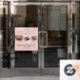 Makeup Studio Window Cling - Blush Pink Black Script Font Your Logo Here 3 Photo Lashes Business with name and social media handle.