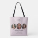 Elevate your beauty brand with this elegant makeup artist photo tote bag, featuring a soft blush background, modern handwritten script, minimalist beauty line art, and a customizable circular photo spaces.