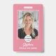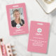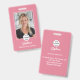 Makeup Business Employee badge featuring a customizable photo and business logo on the front along with popular white script and sans serif typography for your. Customizable "if found return to" with logo and business details on the back.