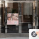 Makeup Studio Window Cling - Blush Pink Black Script Font Your Logo Here 3 Photo Makeup Business with name and social media handle.