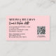 The back includes your contact details—such as phone number, website, email, and social handles—along with a QR code that you can link to your booking page or any other website. Below the QR code, a note reads “Scan to book an appointment.” The blush pink background color can be customized to fit your brand style, making this a modern and professional choice for makeup artists.