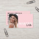 Modern Makeup Artist Business Card. This sleek and stylish design features a single photo on the left side of the front, shown in color but easily changeable to black and white using the photo filter tool. You can keep the sample image or replace it with your own photo or a makeup sample image for a personalized touch.