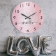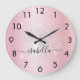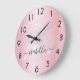 Blush pink silver glitter dust metal name script large clock