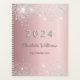 A blush pink faux metallic looking background decorated with faux silver glitter dust. Personalize and add a name. The name is written in gray with a modern hand lettered style script. Perfect for school, work or organizing your personal/family life.