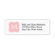 Pretty and trendy personalized monogram wedding return address labels with a cute and modern pastel blush pink and white design. Add your custom monogram and address to these stylish and elegant labels.