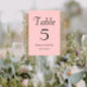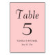 Guide your wedding reception guests to their table with this simple style table number card that features black, stylized lettering on a trendy, blush pink color background. Design is on each side of card. Edit your card to change table number, wedding couple's names and date. Order cards separately for each table number.