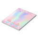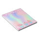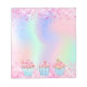 A holographic background in blush pink, purple and mint green. Decorated with pink confetti /sprinkle and 3 cupcakes in blush pink and blue. For menus, grocery shopping, recipes.