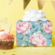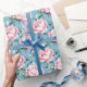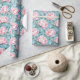 Blush Pink Trailing Peony floral Wrapping Paper with sky blue background.