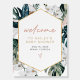 This baby shower welcome sign features pink pampas, tropical palm leaves and a fun handwritten script font. This baby shower foam board is perfect for your beach or tropical themed baby shower event.