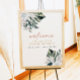 This bridal shower welcome sign features pink pampas, tropical palm leaves and a fun handwritten script font. This bridal shower poster is perfect for your beach or tropical themed bridal shower event.