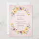 This design features a soft blush backdrop adorned with vibrant yellow roses and deep purple blossoms. Delicate greenery and leafy sprigs create a lively spring feel. The palette blends warm sunshine tones with romantic pastels for a cheerful atmosphere. Ideal for a seasonal outdoor ceremony.