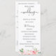 Elegant blush pink watercolor flowers and delicate green foliage, wedding program. Program features cute calligraphy "wedding" accent with multiple lines for custom text lists for ceremony order of events, wedding party and thank you note.