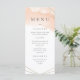 Menu featuring blush pink watercolor at the top with faux gold foil geometric frame and stylish typography.