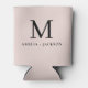 Blush Pink Wedding Favor Monogram Name Heart Can Cooler