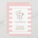Blush Pink White Striped Baby Girl Sip and See Invitation