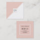 Blush pink and white geometric architect business cards with monogram. The front includes two diagonal stripes one pink and one white that separate the card in two triangles. A white square is on the center with your monogram.