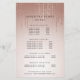 Elegant flyer design displays your services, price list or business information in classic black lettering on a blush pink ombre background adorned with strands of faux rose gold foil string lights. Includes four customizable headings and body text fields, and space for your business contact information along the bottom. To adjust layout, enter your text and then use the Customize function to change positioning and font sizes.