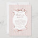 A soft blush pink Christmas invitation featuring elegant watercolor ribbons and a classic striped background. The warm champagne and rose tones create a refined yet cozy atmosphere — perfect for holiday gatherings, Christmas dinners, or festive soirées with family and friends. A timeless blend of modern femininity and classic holiday charm.