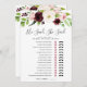 Chic floral bridal shower game card matches our Blush Romance bridal shower collection and features a top border of blush pink and burgundy watercolor flowers with lush green botanical foliage. Double sided card lets you get two games in one! Front features He Said, She Said and reverses to a wedding themed word scramble. Personalize with the bride to be's name and date of shower. For additional customization, feel free to contact me!