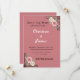 Beautiful wedding invitation design with an elegant dusty rose/mauve background. It features decorative floral elements with pink and white roses along with greenery in the top right and bottom left corners. The design has black geometric line accents framing these floral arrangements. There's a decorative line in the middle where details would typically be added, and elegant "Save the Date" text at the top with a decorative flourish underneath.