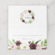 Chic floral place card design features space for your guest name and table number, with a bottom border of watercolor foliage and flowers in blush pink, burgundy marsala and ivory. Cards reverse to reveal a matching watercolor floral wreath with your initials and wedding date inside. Designed to match our Blush Romance wedding and event collection.