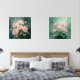 Blush Rose Elegance on Deep Jade Wall Art Sets