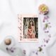 Elegant rose gold graduation invitation in blush pink personalized with one photo on the cover and three more photo on the back. Double sided graduation invitation printed with rose gold foil against a pale pink background. 2 in 1 graduation announcement and invitation personalized with photos and the graduate's name in rose gold foil.