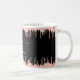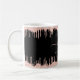 Girly, Elegant, Sylish Blush Rose Gold Glitter Drips 2 Monogram Script custom personalized name monogrammed mug. Featuring a modern luxury faux blush pink rose gold glitter dripping frame, a large double hand lettered monogram script font with swashes (large size initials), and a serif type font name in pink on black background. Easy to personalize it. Great feminine girly gift for girlfriend, mother, birthday, wedding, sweet 16 birthday party bridal shower, and baby shower, business, home office, professional work and for anyone who like pretty glamourous shiny things.