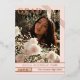 Modern rose gold graduation invitation in blush pink personalized with one photo on the cover and another photo on the back. Double sided graduation invitation printed with rose gold foil against a pale pink background. 2 in 1 graduation announcement and invitation personalized with photos and the graduate's name in rose gold foil and modern lines. Eye catching rose gold graduation invitation.