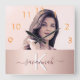 A rose gold, blush pink gradient background. Personalize and add your own photo. The text: The name is written in dark rose gold with a modern hand lettered style script with swashes. The monogram letter in white. Golden numbers from 9 to 3. To keep the swashes only delete the sample name, leave the spaces or emoji's in front and after the name. Templates for a name and monogram letter. Perfect as a birthday gift for you best friend, mother or sister.