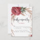 Request guest replies in style with this floral RSVP card featuring blush roses, pampas grass, and delicate greenery. Elegant and easy to personalize, this card includes options for attendance and meal choices. A perfect match for boho, rustic, or garden weddings in soft neutral tones.
