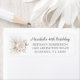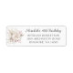 Boho Blush Pink Roses with Eucalyptus and Dried Palm Leaf 40th Birthday Party Return Address Labels... Our trendy 40th birthday party invitation's return address label features a boho style watercolor floral bouquet with blush pink roses, eucalyptus branches, and a bohemian style dried palm leaf. The label doubles as an announcement for the party with example text "Meredith's 40th Birthday" in elegant script typography just above your name and return address in a classic serif font. You can easily revise all text with your own details on the personalization template.